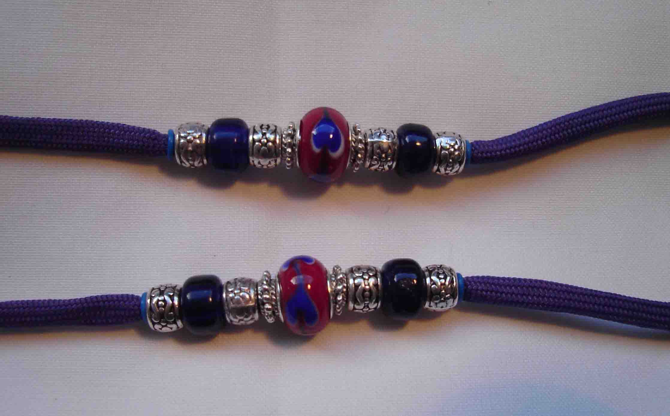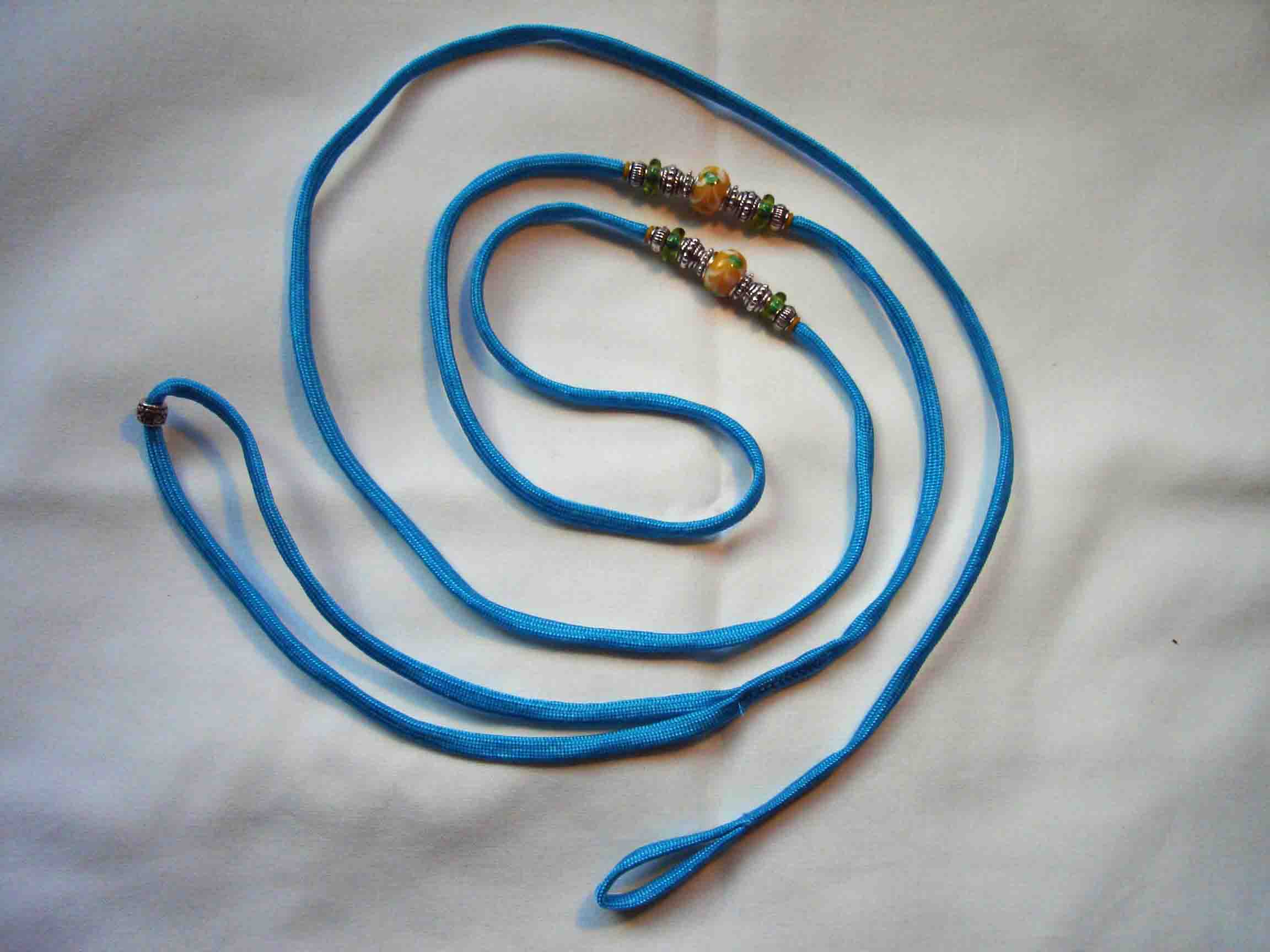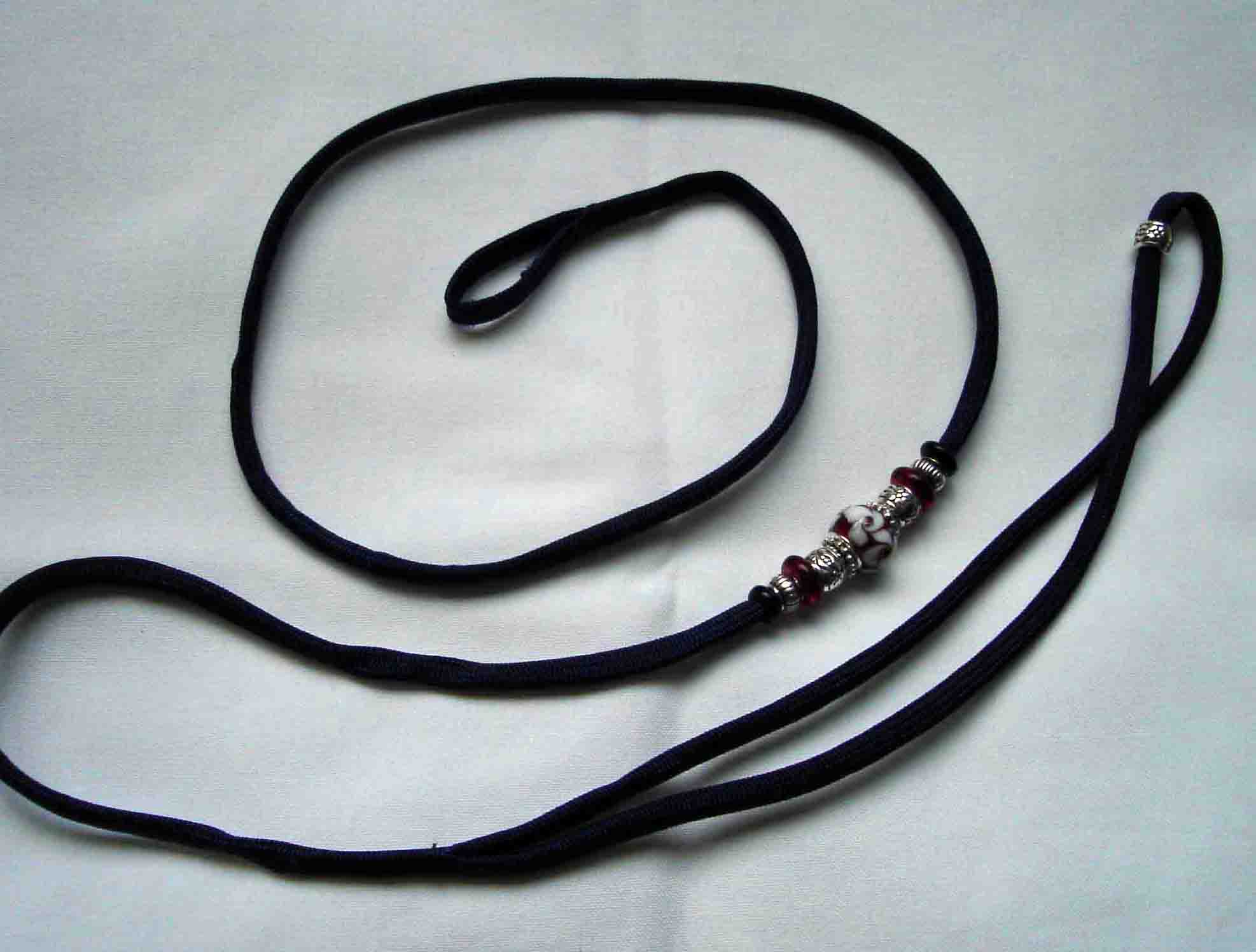 Long double beaded turquoise lead                  Short single beaded navy blue lead
