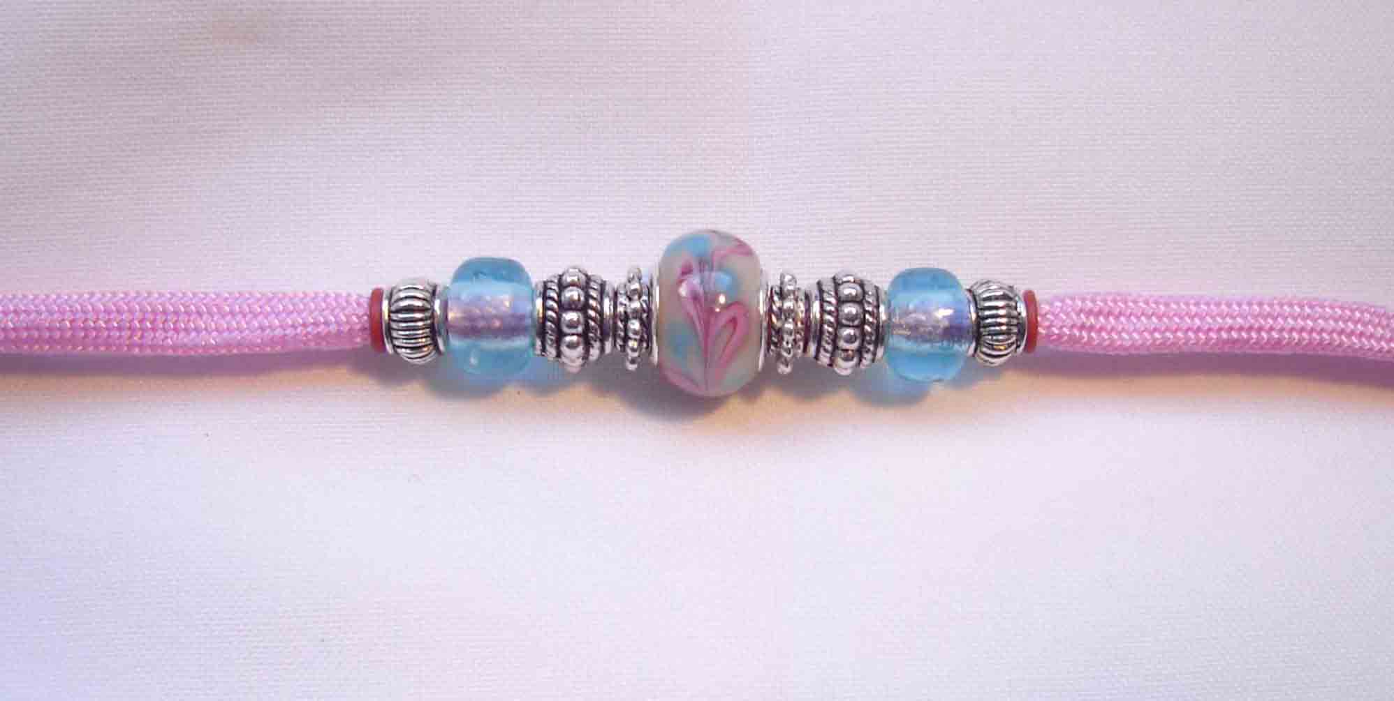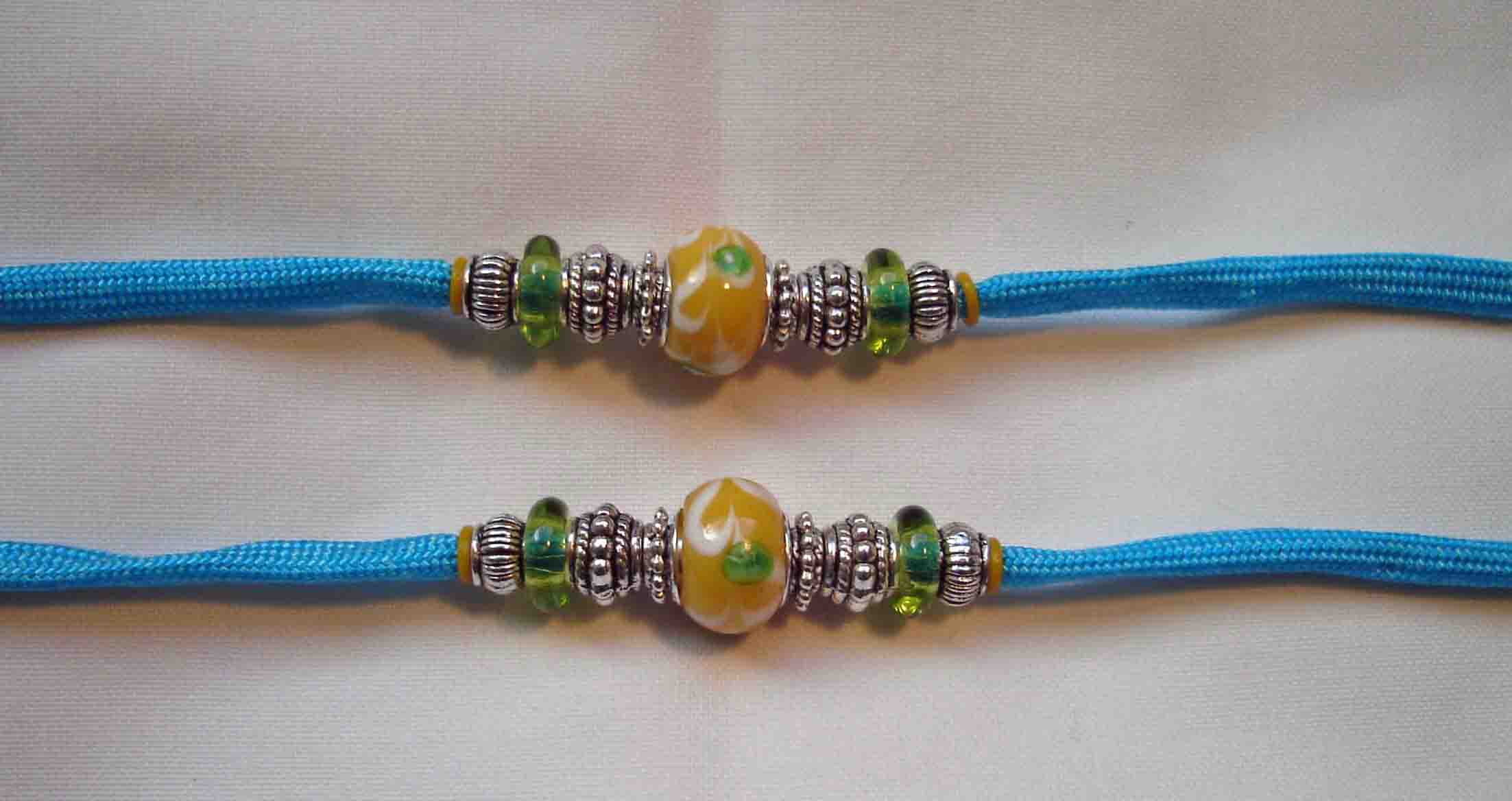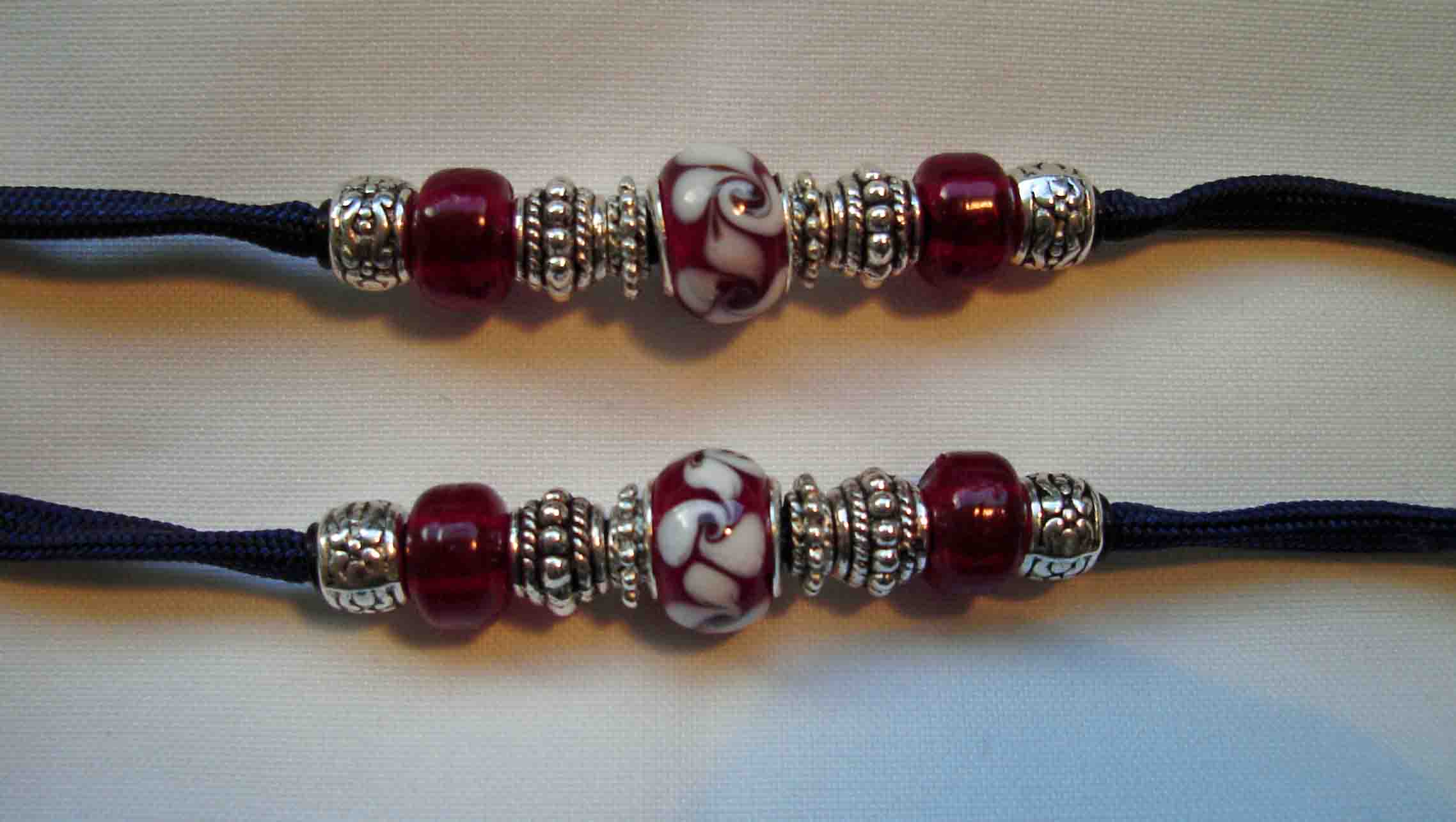 Long double beaded turquoise lead                  Short single beaded navy blue lead