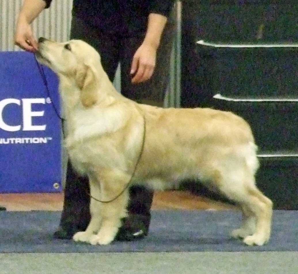 "Lovely sweet bitch with good front angulation. Good neck flowing into level top-line dark pigment, straight front, excellent upper-arm" _____________________ Baby Puppy in Show at the 7th Golden Retriever National Championship Show in Adelaide, June 2008 under Mrs Marleen Sillence (UK).