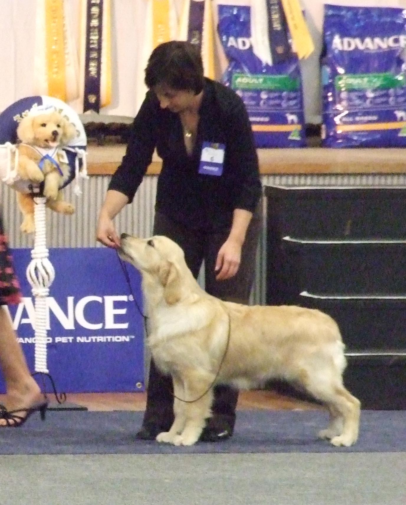 Naragold Angelica Opposite Sex Minor Puppy in Show Critique: Couldnt deny this very well balanced puppy 1st place. So sweet in head and expression. Great pigment. Angles good front and rear. Nice tight feet. . This one will have a great future.